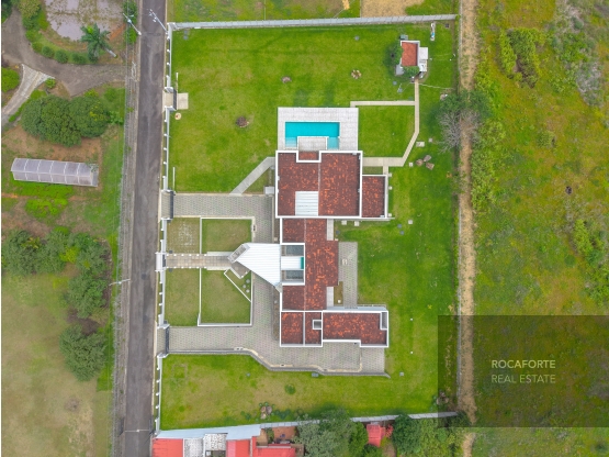 Los exteriores son un verdadero encanto: piscina rodeada de espejos de agua, jardines inmensos 🌿, zonas de parqueo amplias 🚗 y un bar en el segundo nivel 🍸 perfecto para reuniones con la mejor vista.